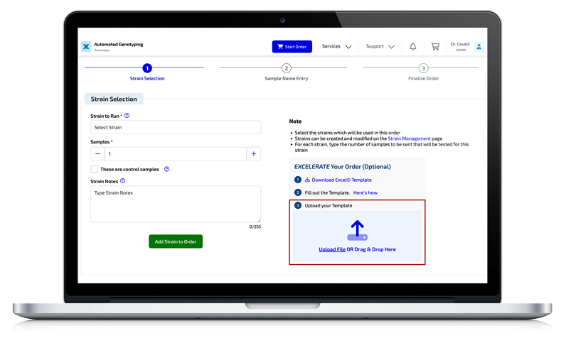 Prepare a genotyping order in Mosaic and submit to Transnetyx (maximum of 2 strains/colonies).